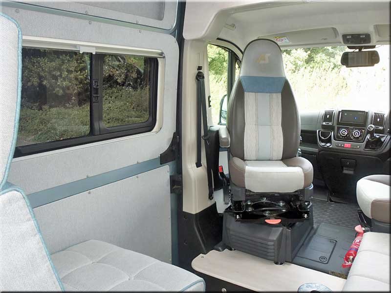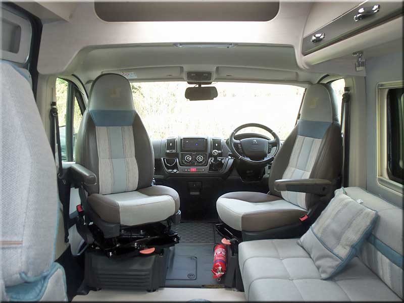 Cab air-con, swivel seats, airbags, over-cabin storage, cabin blinds, electric windows and mirrors, radio.