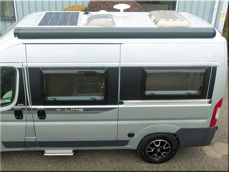 A 2 berth RHD 6 Speed Manual 2.0TD Hi-Top Camper-Van (2017) with PAS, cruise control, 3.0m awning, Tv aerial, solar panel, tow bar, alloy wheels, remote central locking. Colour: Silver.