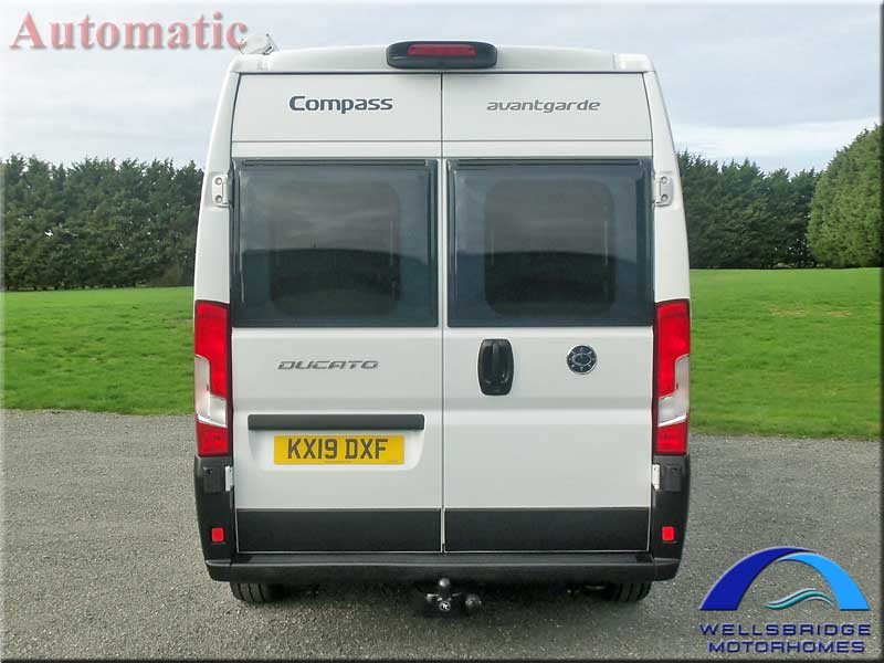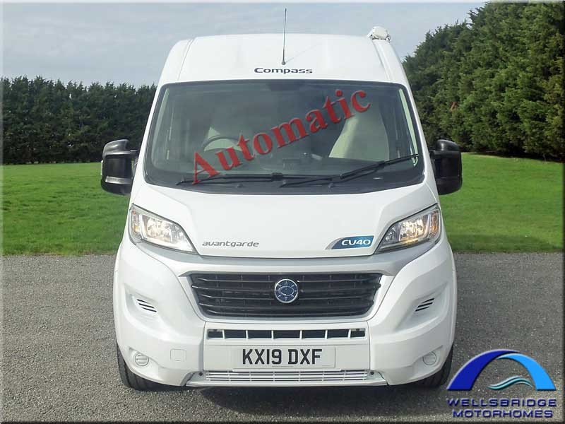 A 3 berth RHD Automatic 2.3TD Hi-Top Camper-Van (2019) with PAS, cruise control, 3.4m awning, solar panel, Tv aerial/antennae, tow bar, alloy wheels, tinted side & rear windows, remote central locking.
