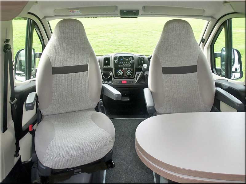 Cab air-con, swivel seats, airbags, over-cabin storage, cabin blinds, electric windows & mirrors, radio/CD/media player.