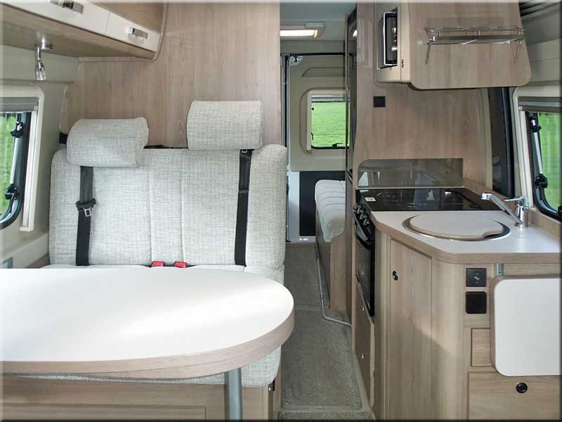 Half dinette with 2 forward facing seats with seat belts & removable table.