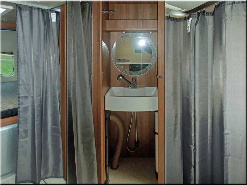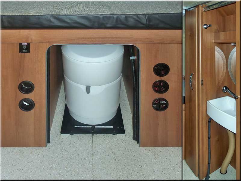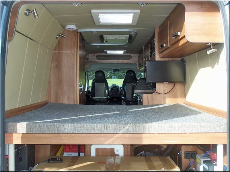 Rear fixed double bed (6ft long by 4ft 6in wide), a pull out wc underneath.