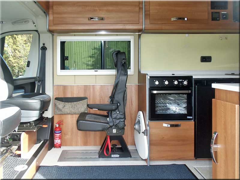 A 2 berth RHD Automatic 2.3TD Hi-Top Camper-Van (2018) on an extra long wheelbase with a wheelchair lift, PAS, 3.6m awning, Tv aerial, tow bar, cycle rack, alloy wheels, remote central locking. Converted by Brook Miller Mobility Ltd.