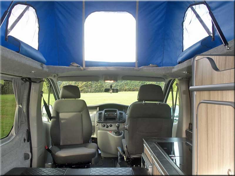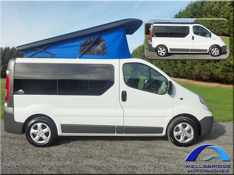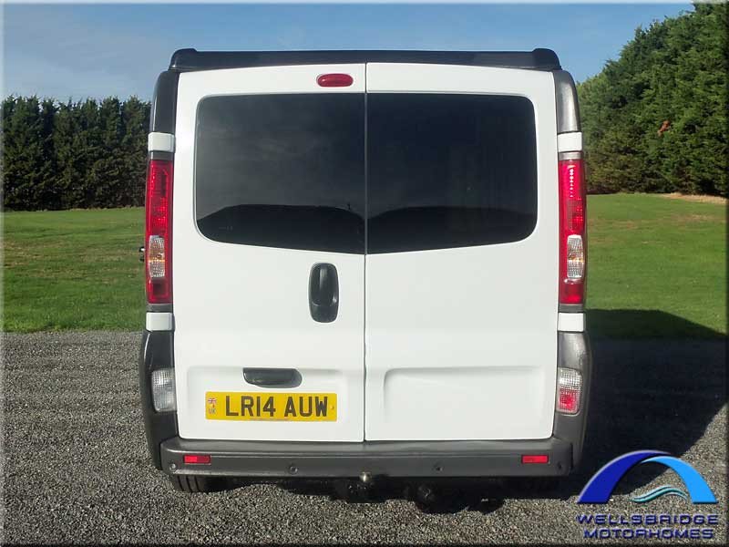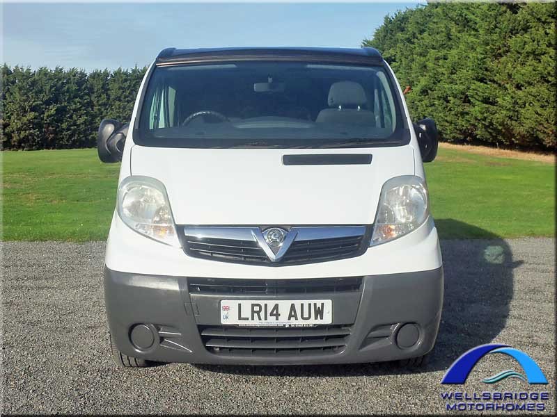 A 4 berth RHD 6 Speed Manual 2.0TD Hi-Top Camper-Van (2014) with a lift-up roof, PAS, tow bar, alloy wheels, remote central locking.