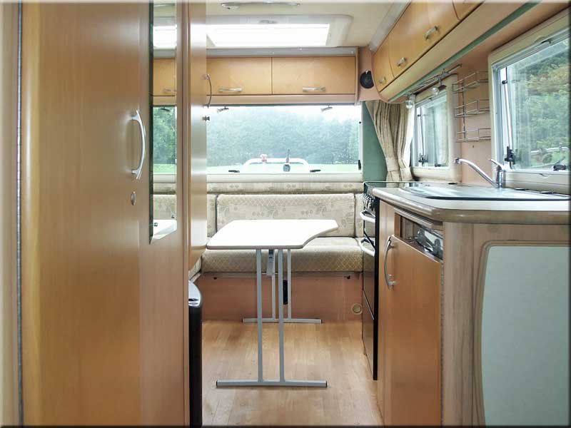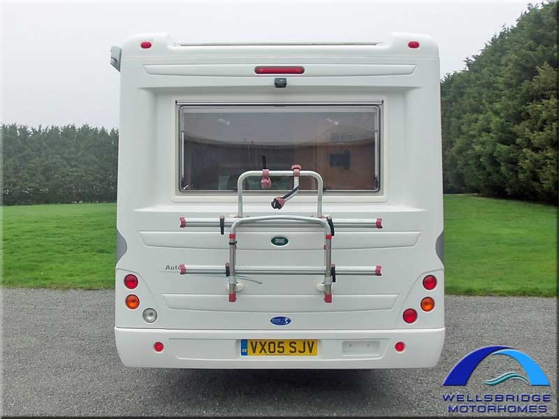 A 2 berth RHD Manual 2.8TD Coach-built Motorhome (2005) with PAS, 3.5m awning, solar panel, Tv aerial, cycle rack, external security hand rail, remote central locking.