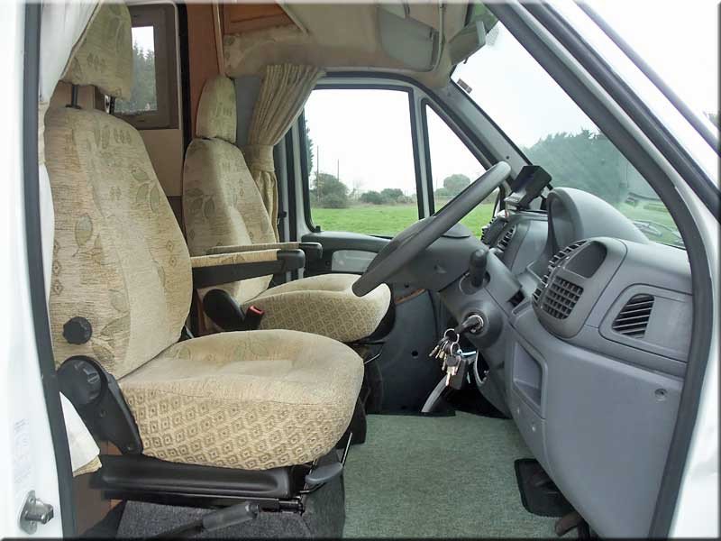 Passengers swivel seat, over-cabin storage, cabin curtains, electric windows and mirrors, radio/CD player.
