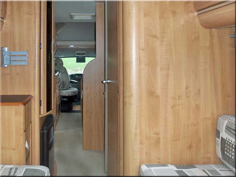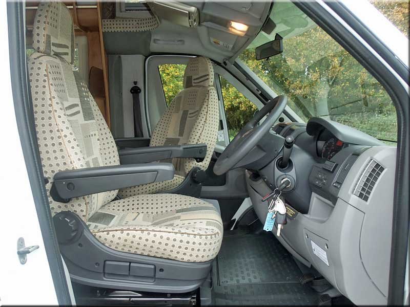 Cab air-con, swivel seats, airbags, over-cabin double bed with curtain divider, cabin blinds, electric windows & mirrors, small over-cabin monitor, radio/CD player.