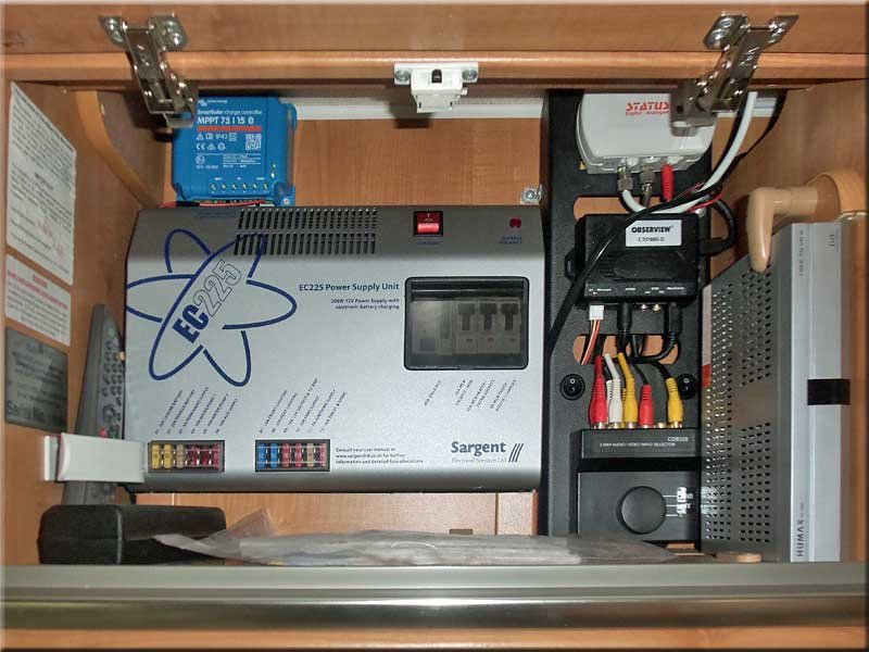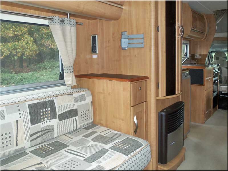 Ceiling fan, air blown convector heater, spot & strip lighting, 240/12V, leisure battery, Tv point & bracket on wall, electric doorstep.
