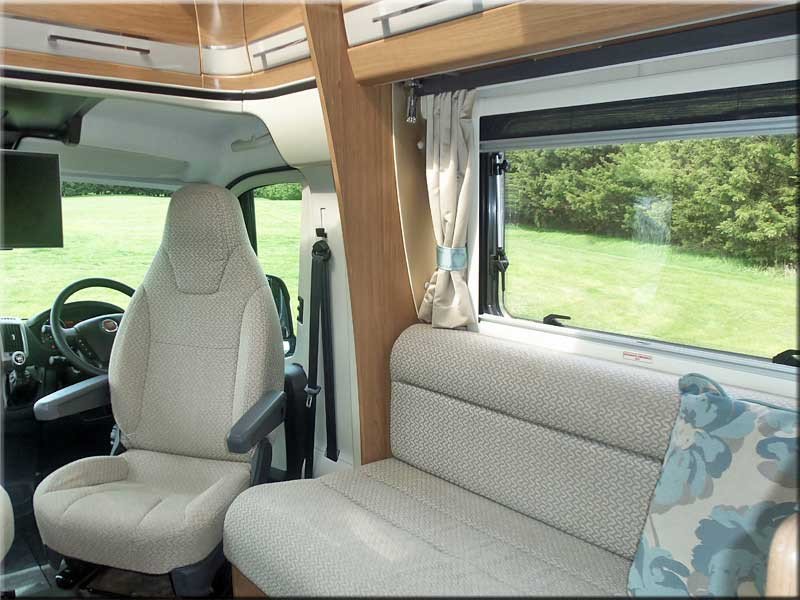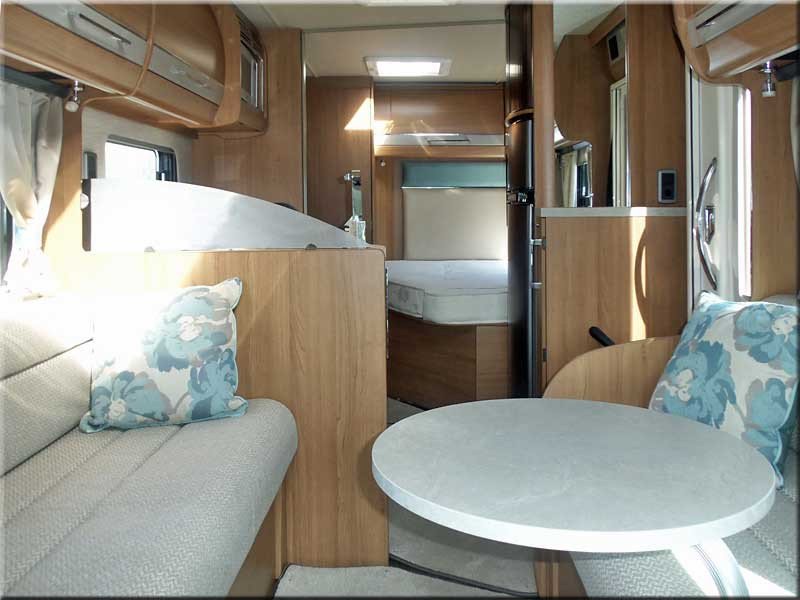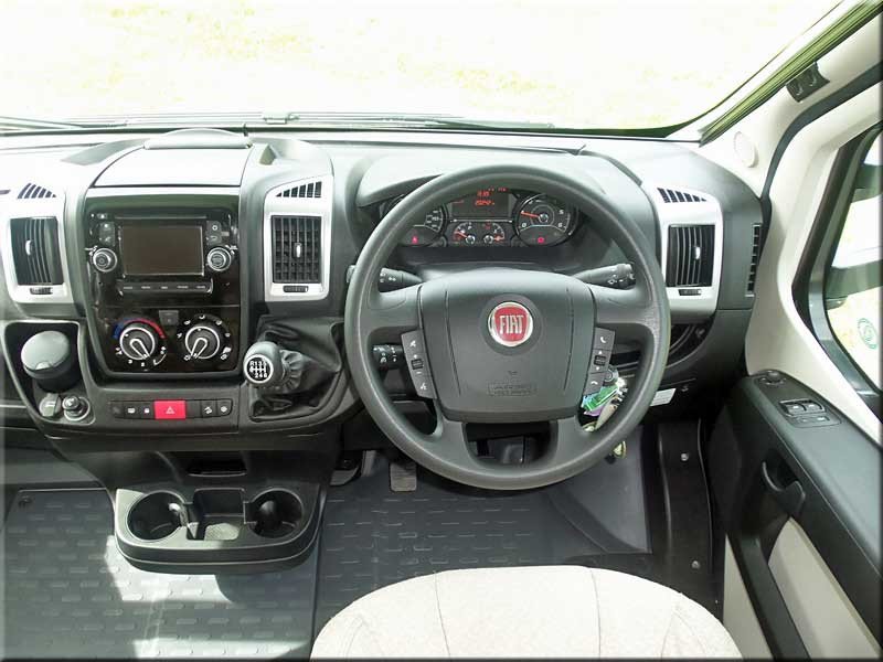 Cab air-con, swivel seats, airbags, over-cabin roof-light & storage & fold-away Tv, cabin blinds, electric windows & mirrors, radio/CD/media player.
