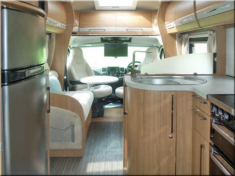 A 4 berth RHD 6 Speed Manual 2.3TD Coach-built Motorhome (2015) with PAS, cruise control, 4.5m awning, Tv aerial, solar panel, cycle rack, remote central locking. Colour: Grey/White.