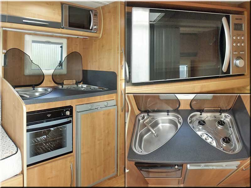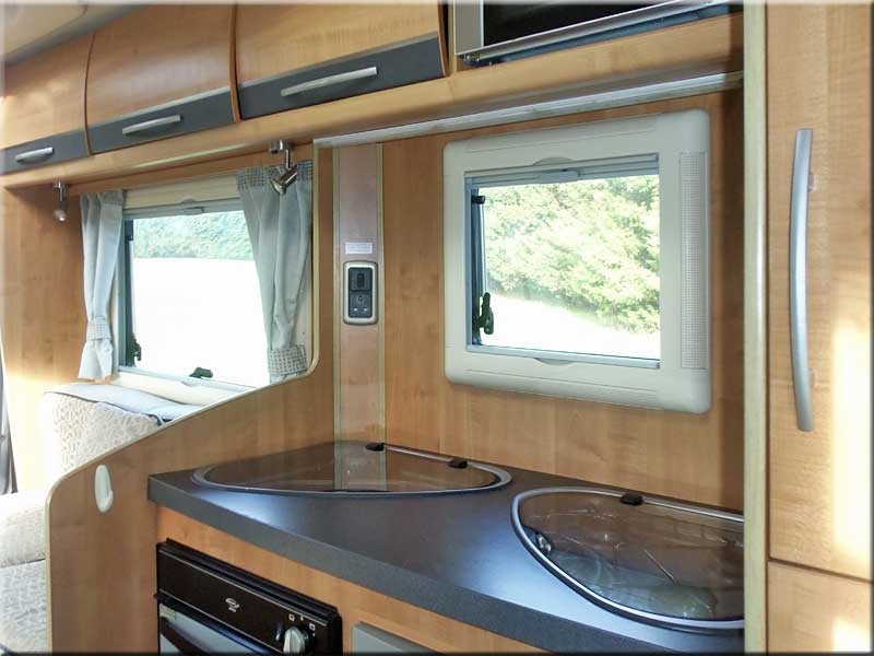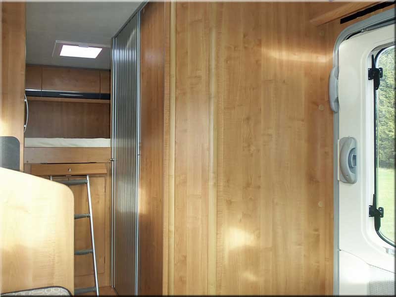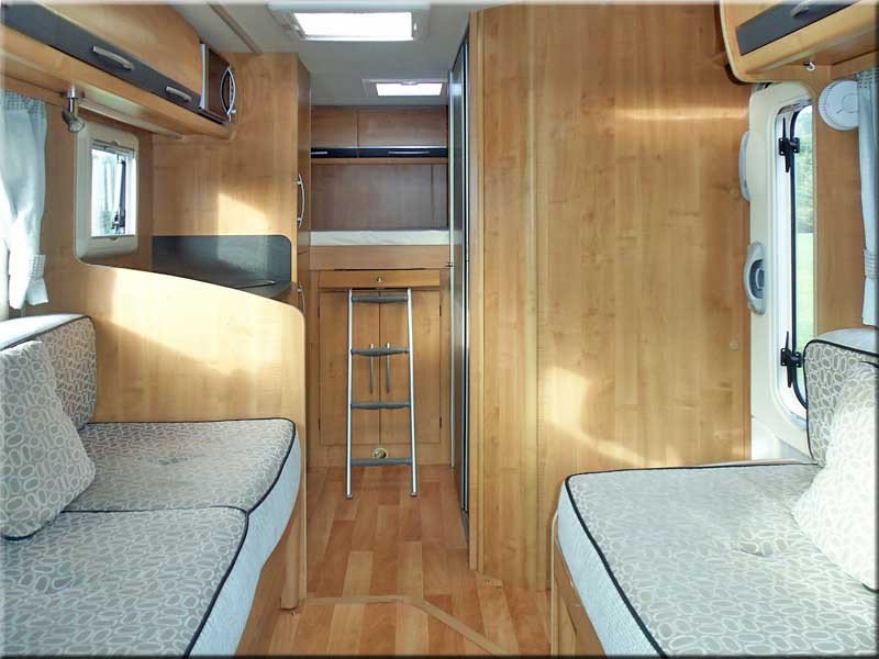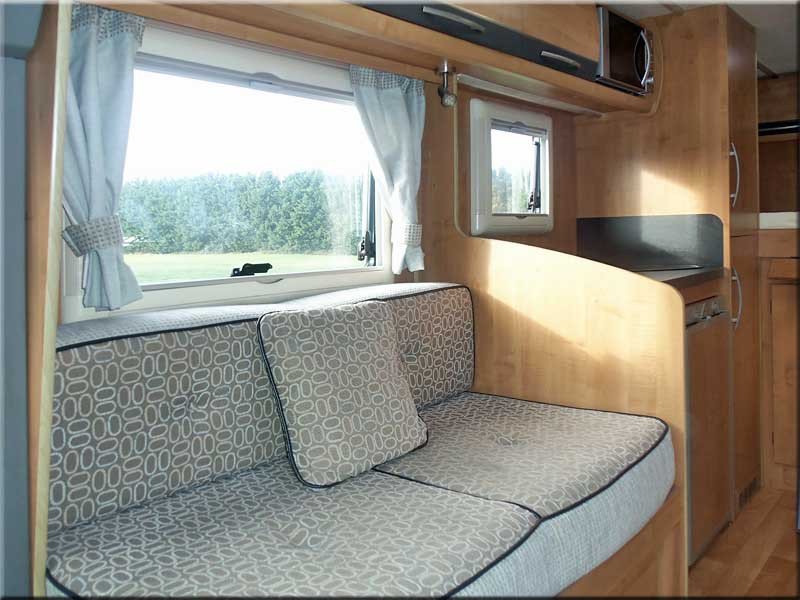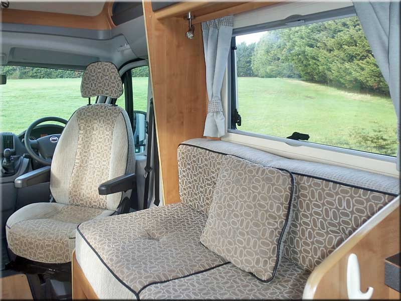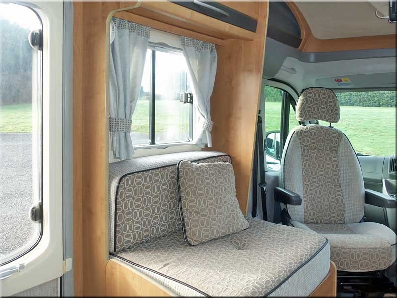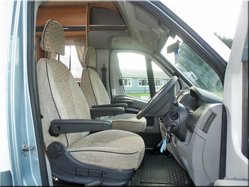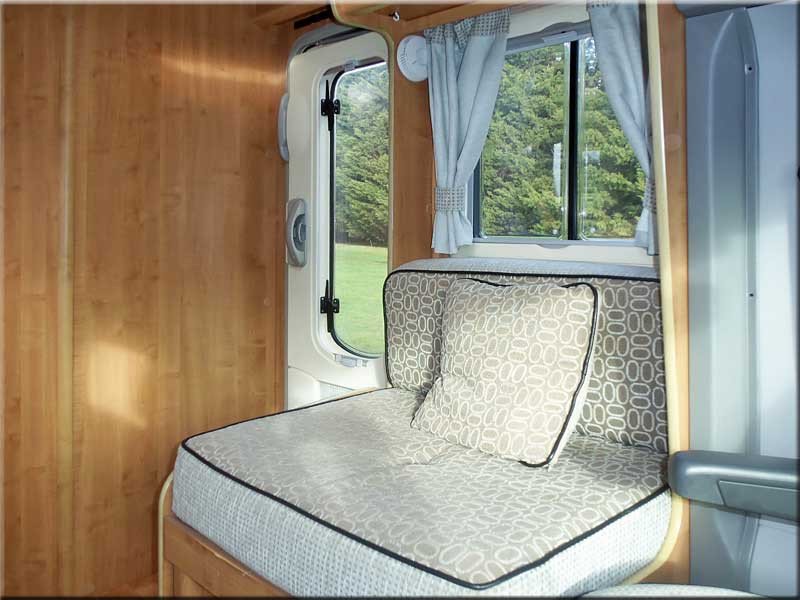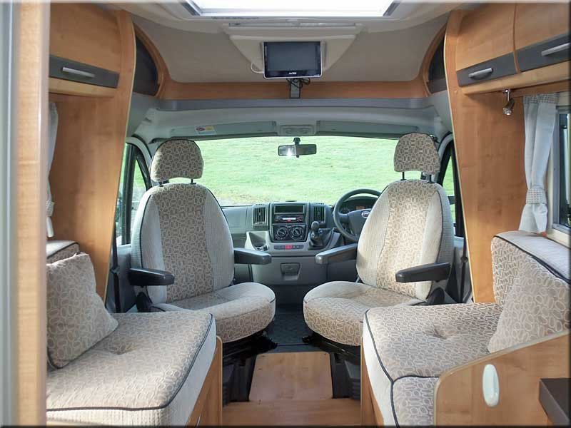 Swivel seats, airbags, over-cabin storage, cabin blinds, electric windows and radio,small over-cabin drop-down Tv.