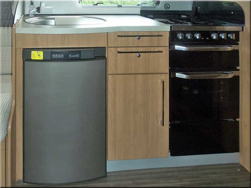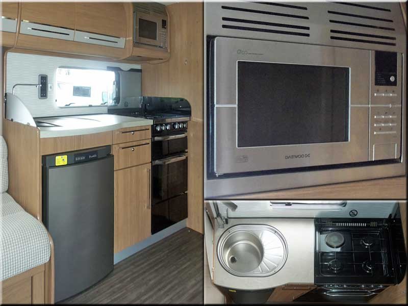 The kitchen has a fully fitted gas cooker (1 elec & 3 gas hobs) + grill & oven, microwave oven, fridge with ice box, sink & drainer, drawer & cabinets, cutlery drawer.