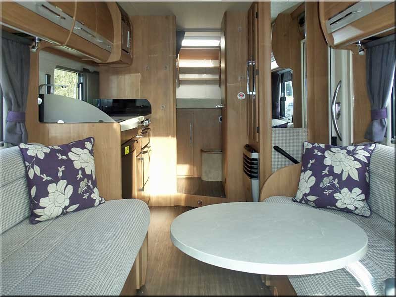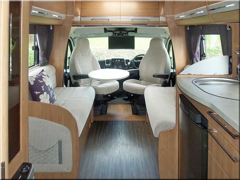 Ceiling fan, air blown heater (Truma heating), spot & strip lights, 240/12V, leisure battery, Tv point, electric doorstep.