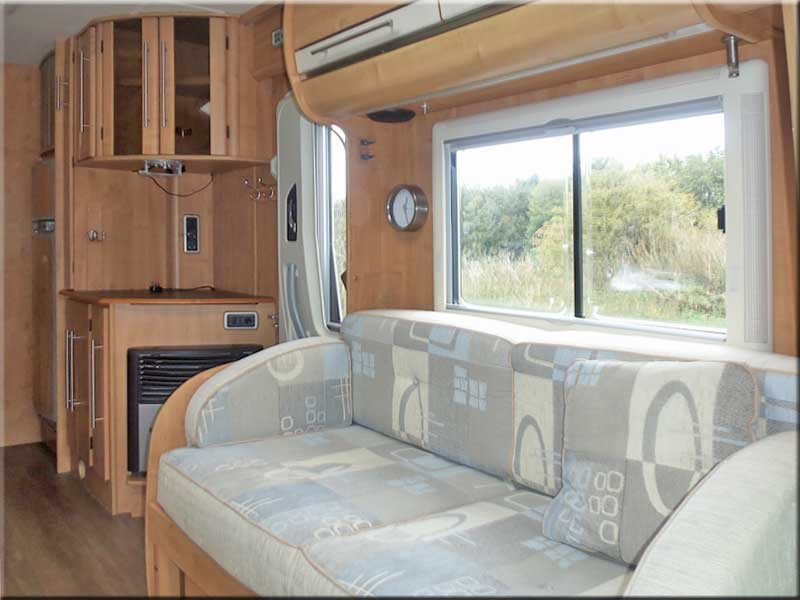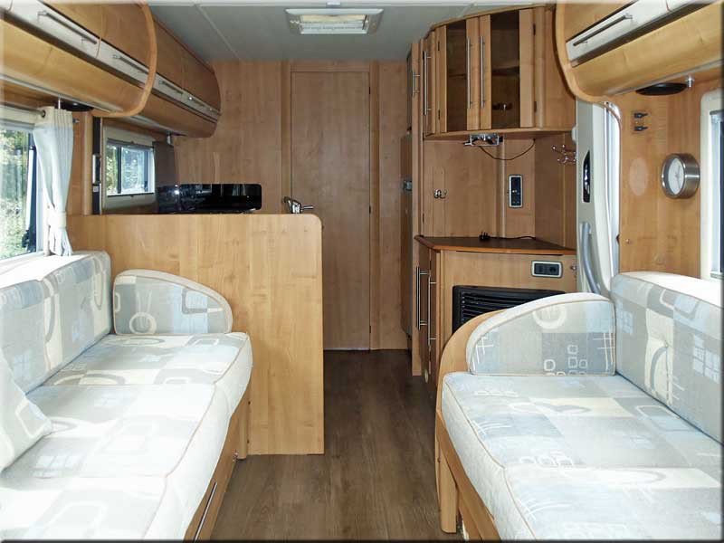 Cab air-con, driver and passenger swivel seats, drivers airbag, over-cabin storage, over-cabin Tv monitor, cabin blinds, electric windows and mirrors, radio/CD.