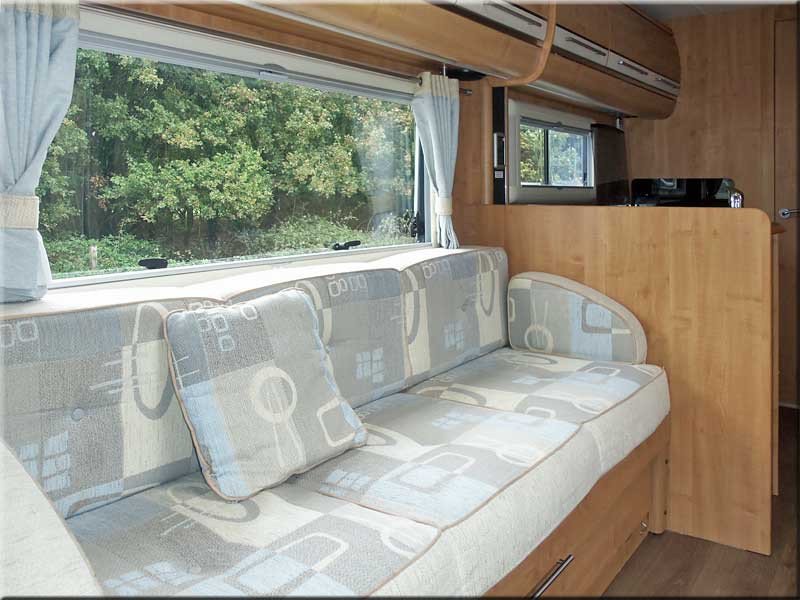 Window curtains, screens and blinds, large roof-light, lino flooring, ample storage.