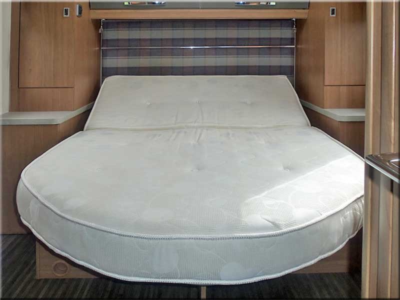 End/rear bedroom with a fixed double island bed and 2 wardrobes.