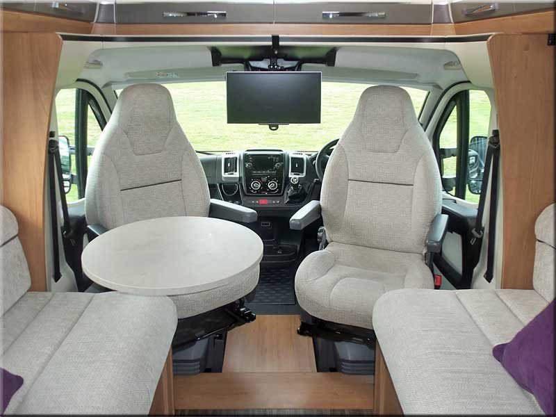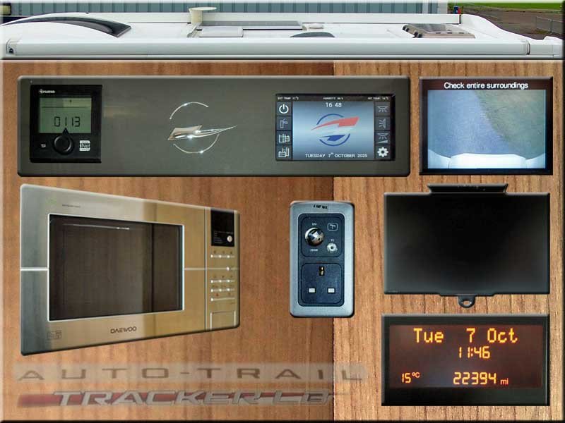 Ceiling fan, Truma heating, spot & strip lighting, 240/12V & leisure battery, Tv point, over-cabin fold-away Tv, electric doorstep.