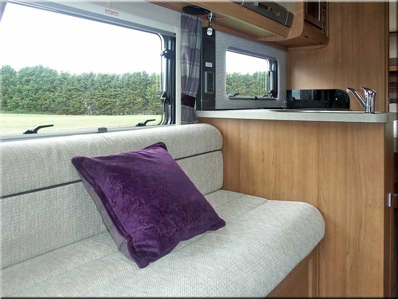 Curtains, screens & blinds, large curved roof-light over the dinette, large roof-light, carpet & lino, ample storage, door fly screen.