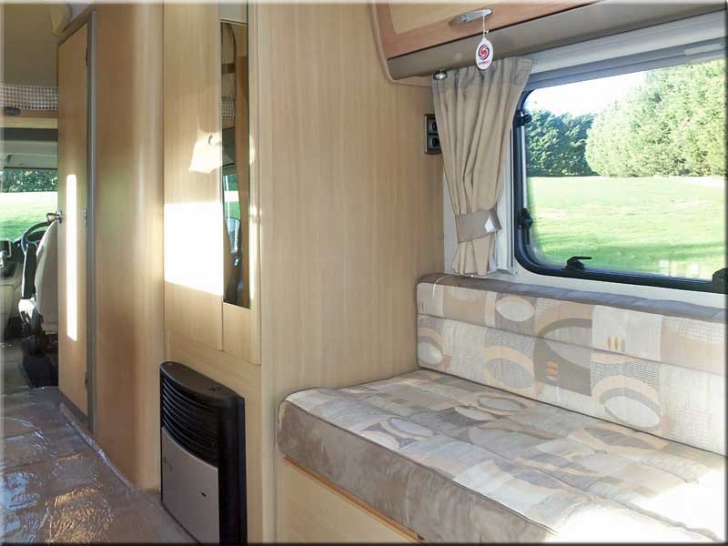 Over-cabin double bed with curtain divider, cabin blinds, electric windows and mirrors, drivers airbag, radio/CD player.