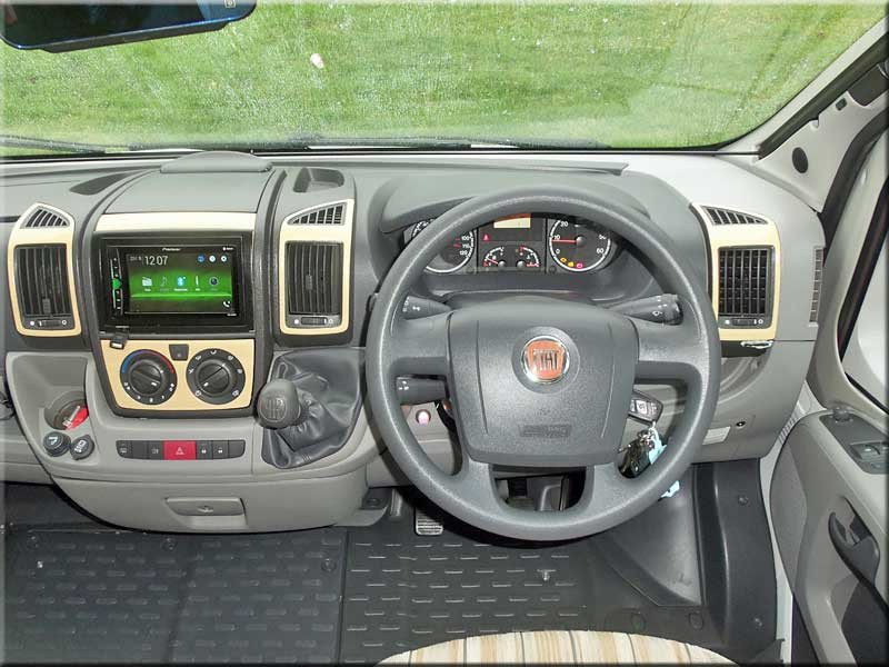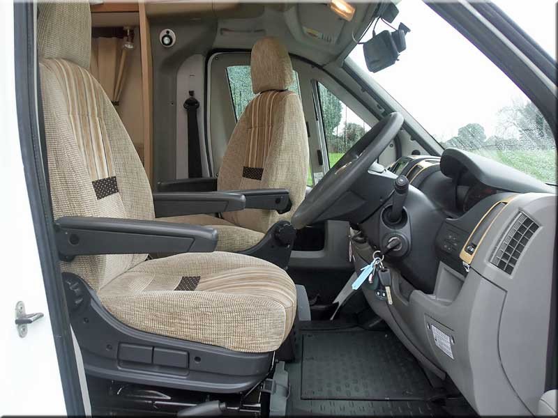 Cab air-con, swivel seats, airbags, large over-cabin roof-light & storage, cabin blinds, electric windows and mirrors, radio.