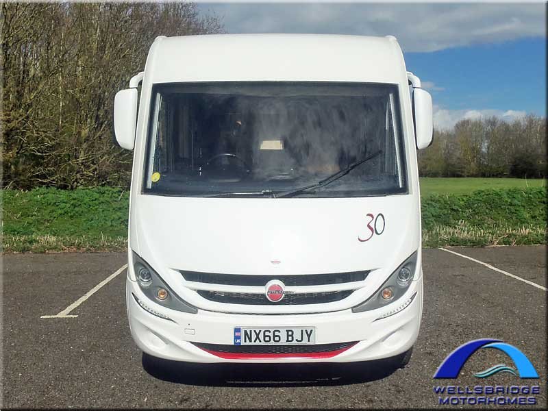 A 4 berth RHD 6 Speed Manual 2.3TD 2 Door A-Class Motorhome (2016) with PAS, cruise control, 5.0m awning, solar panel, Tv aerial, alloy wheels, garage. One Owner from New.