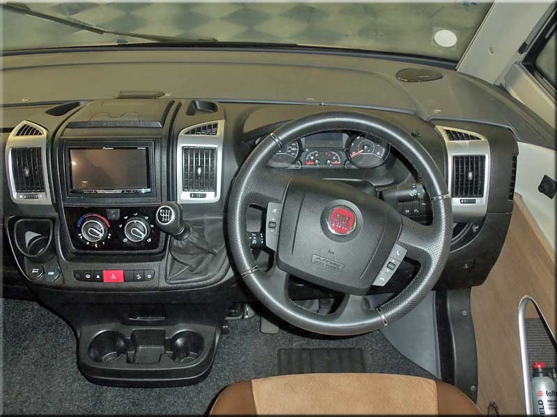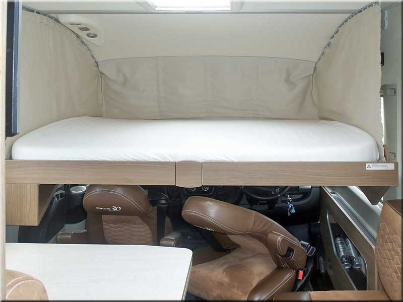 Cab air-con, swivel seats, airbags, over-cabin drop-down double bed, cabin blinds, 1 electric window, electric mirrors, radio.