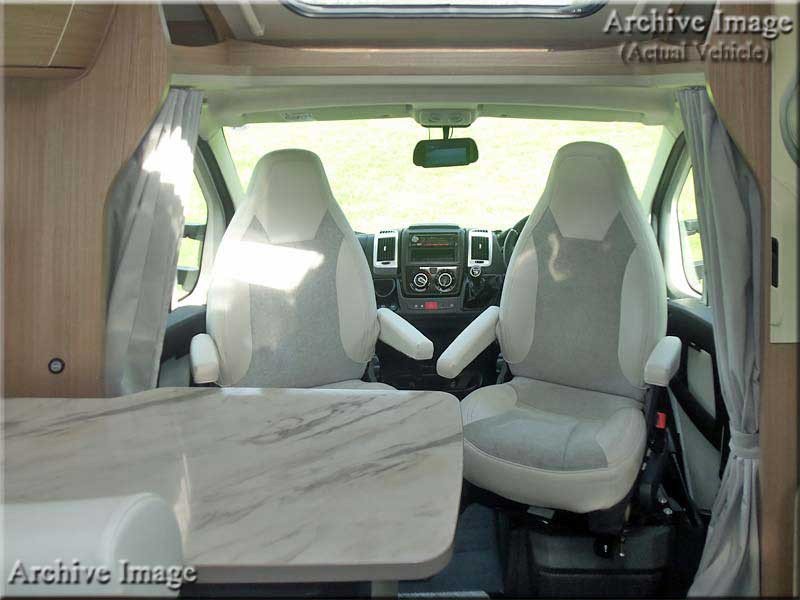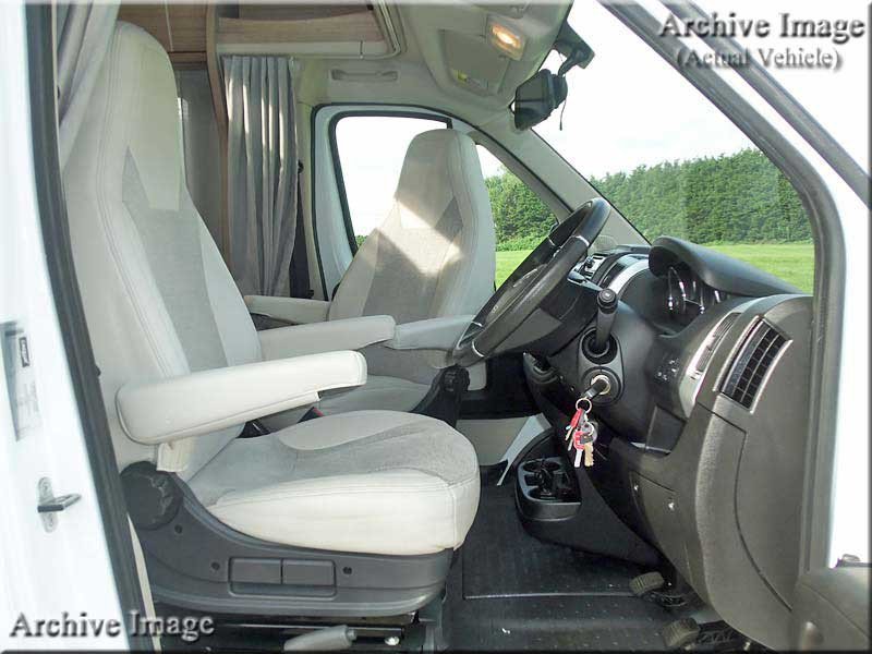 Cab air-con, swivel seats, airbags, large over-cabin roof-light & small storage, cabin curtains, electric windows and mirrors, radio.