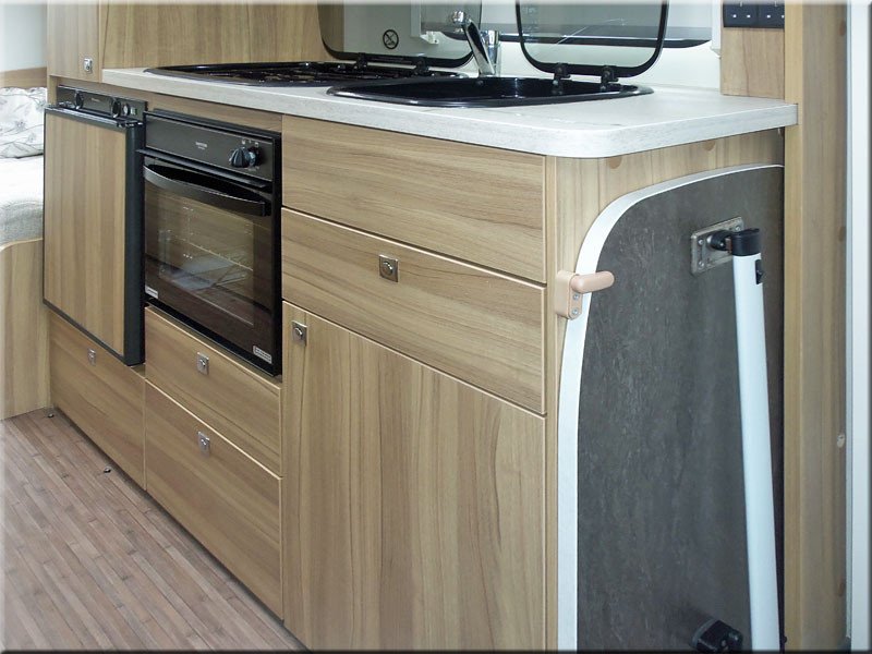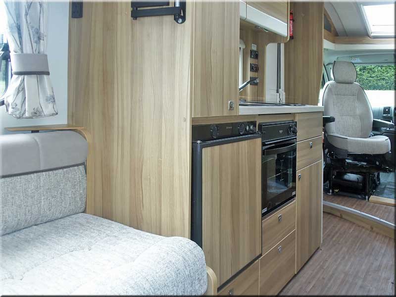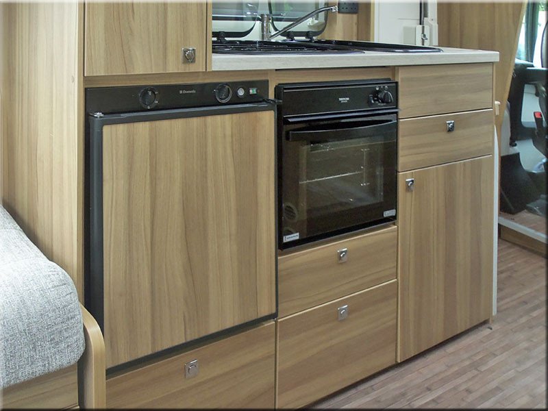 The side kitchen has a 3 burner gas hob, oven/grill, fridge with ice box, sink, drawers and cabinets, small wardrobe.