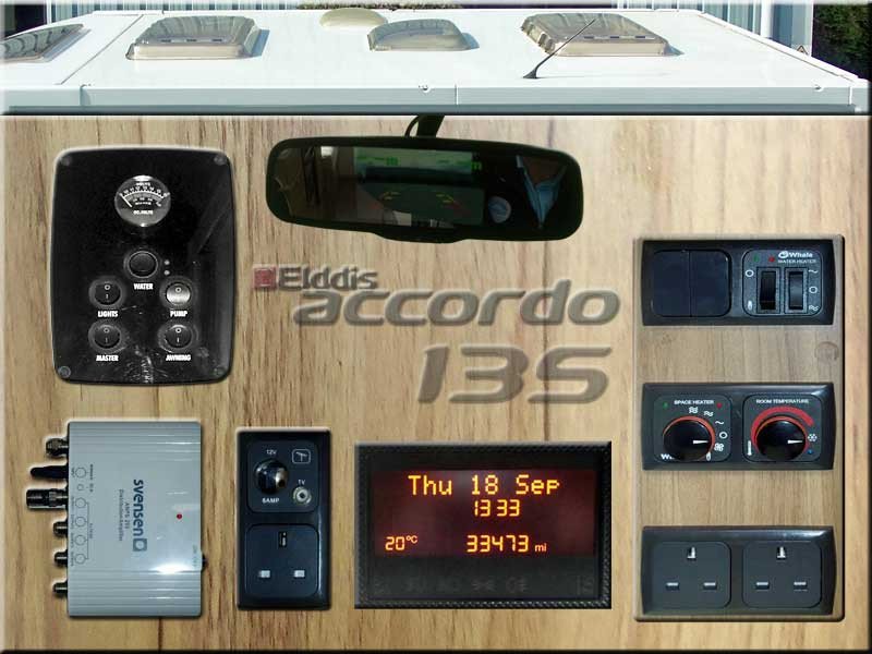 Whale heating system, spot lighting, 240/12V & leisure battery, Tv point.