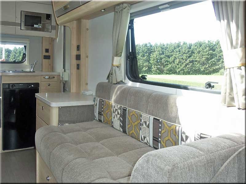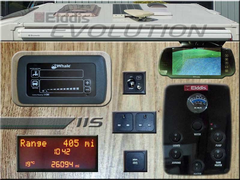 Ceiling fan, air blown heating, spot lighting, 240/12V, leisure battery, Tv point.