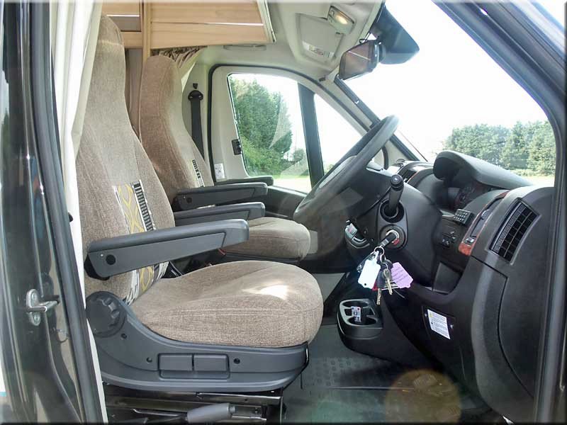 Cab air-con, swivel seats, airbags, over-cabin roof-light & small storage, cabin blinds & curtains, electric windows & mirrors, radio/media player.