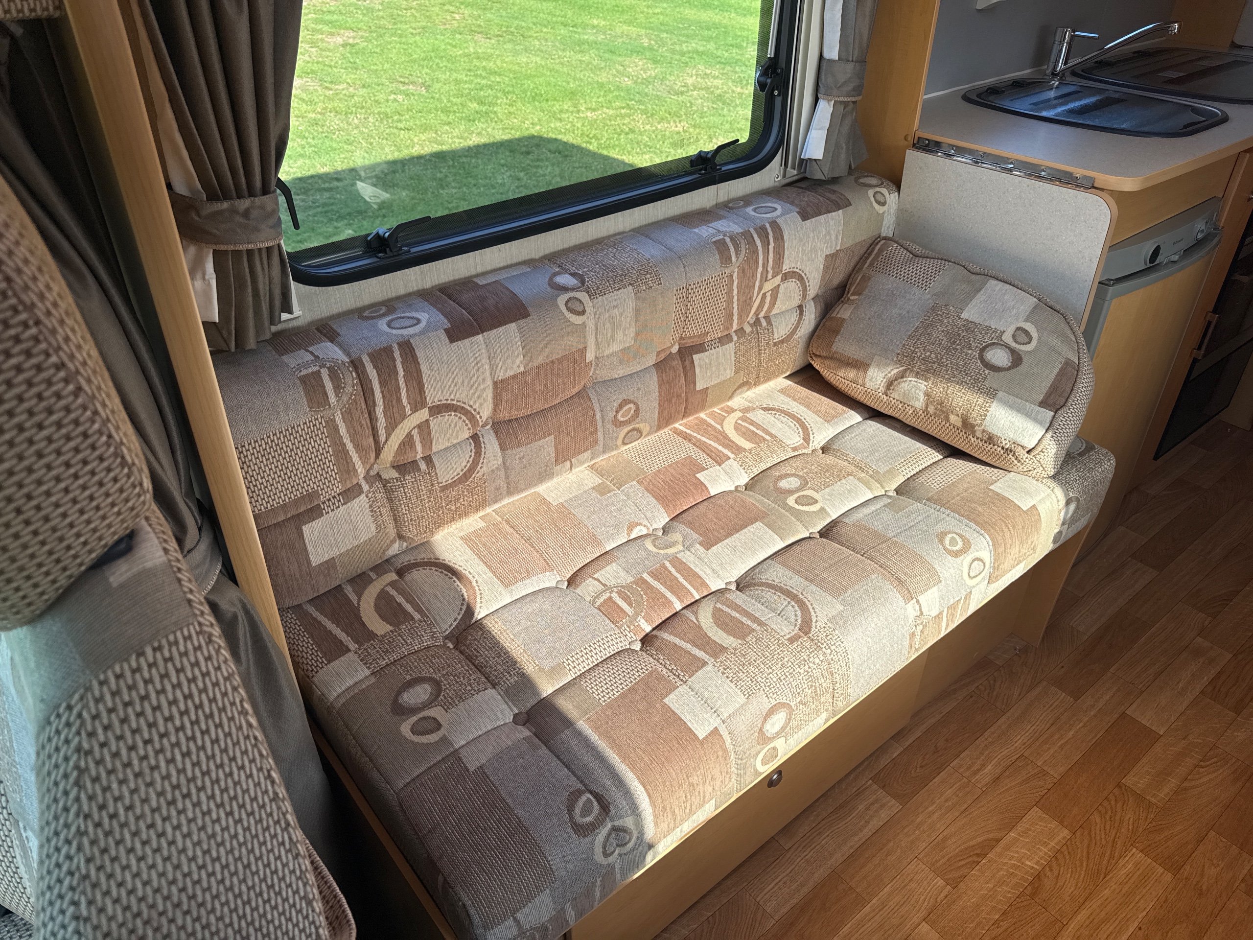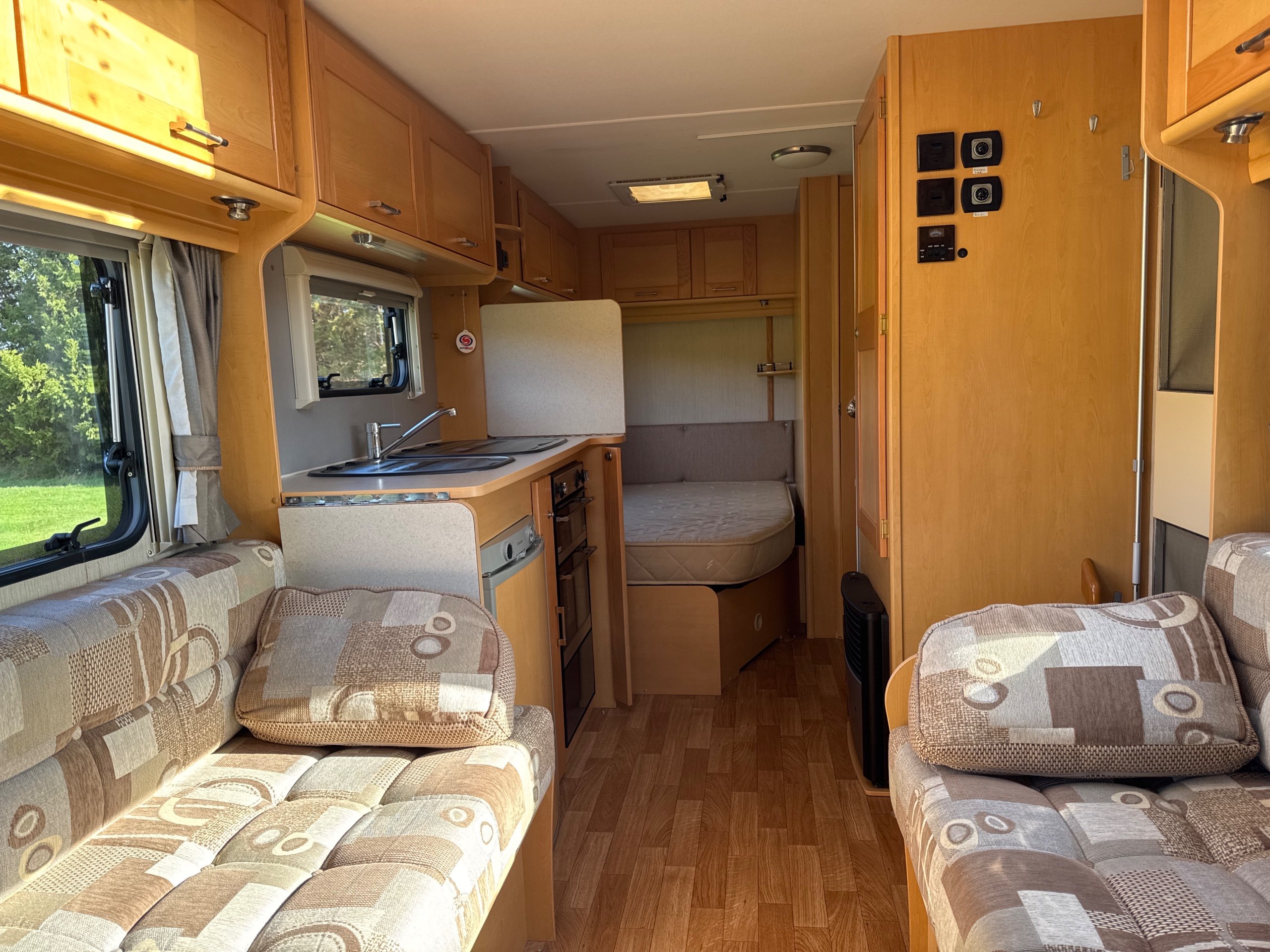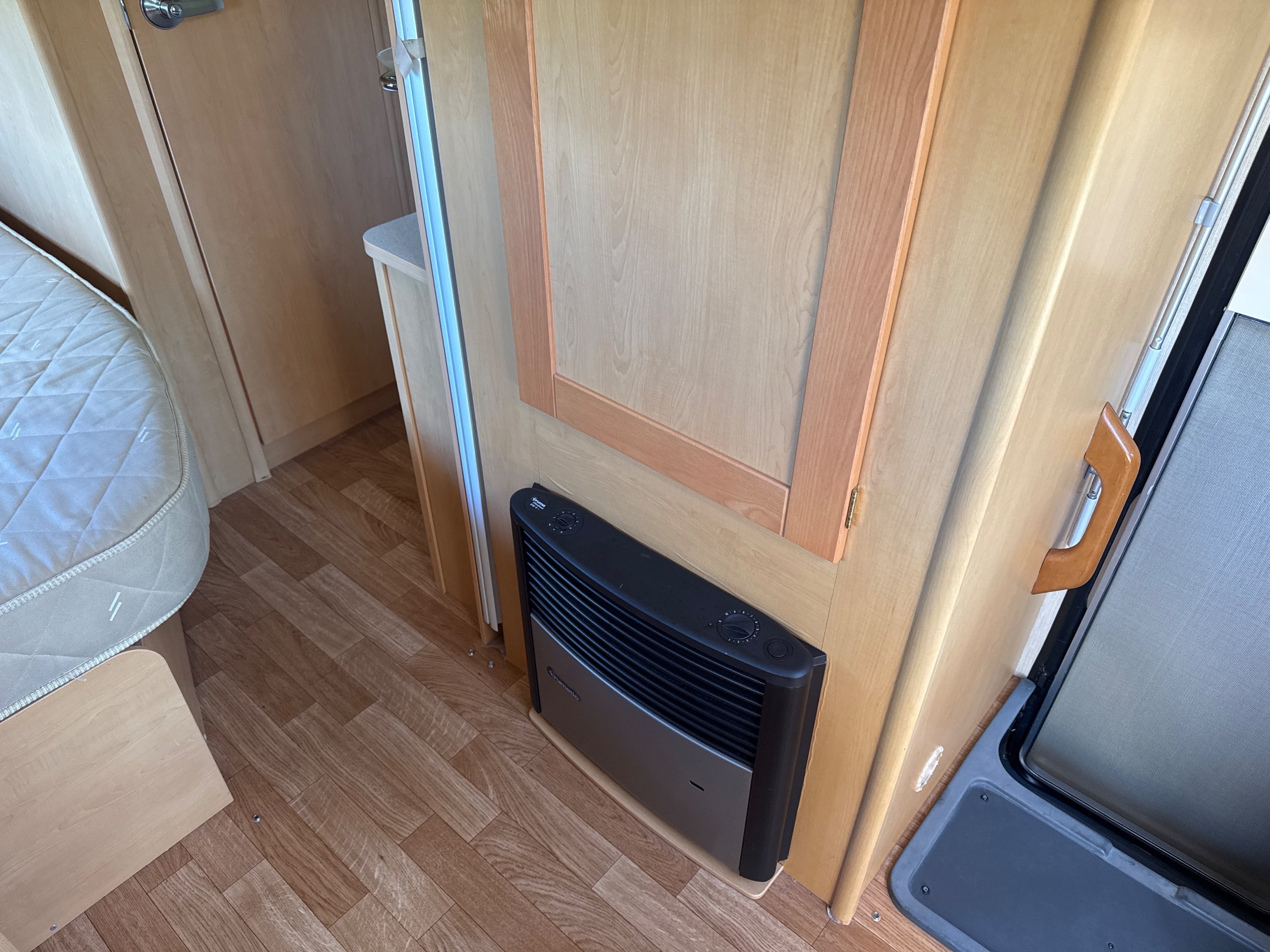 Air blown/convector heater, spot & strip & ceiling lights, 240/12V, leisure battery, Tv point, electric doorstep.