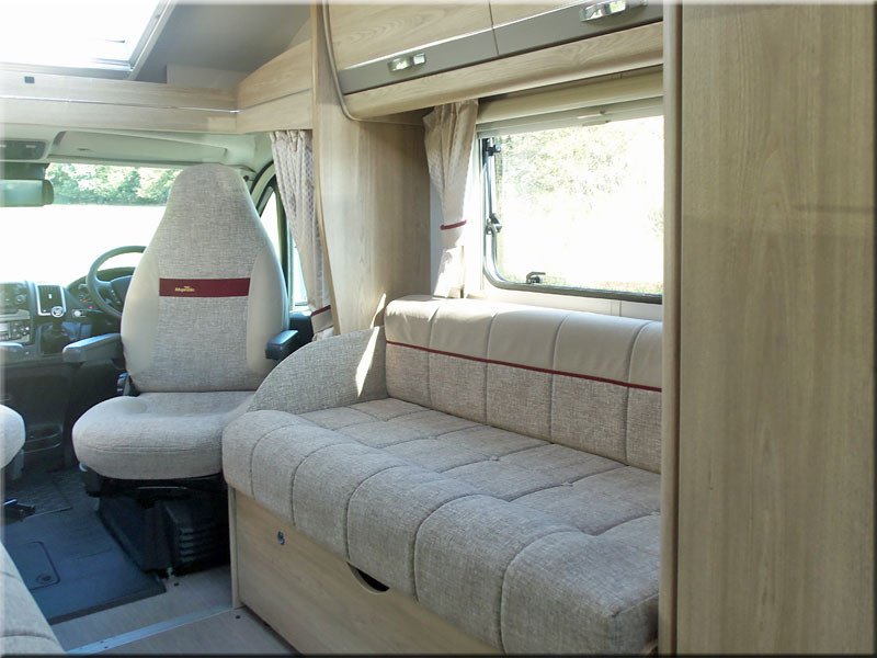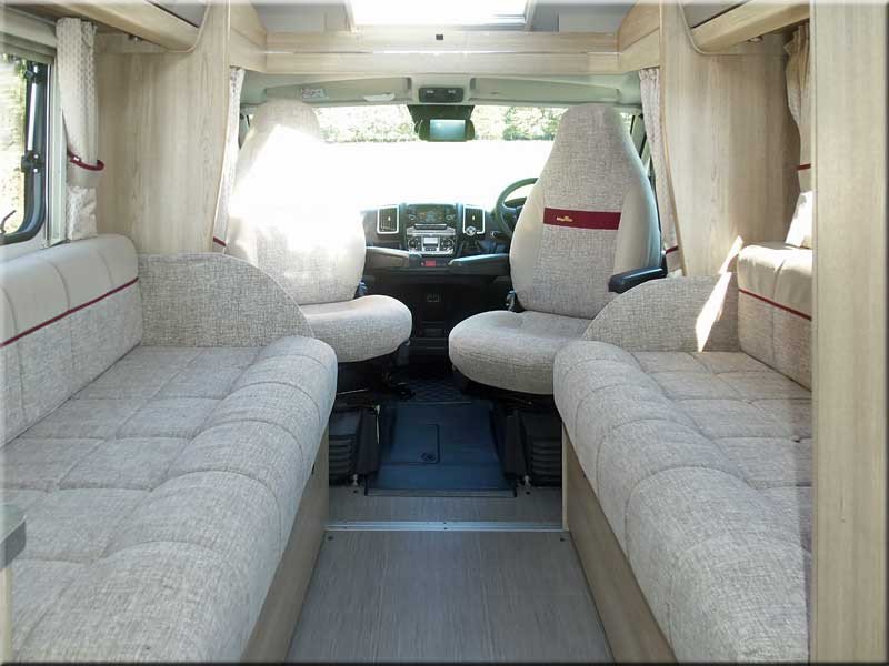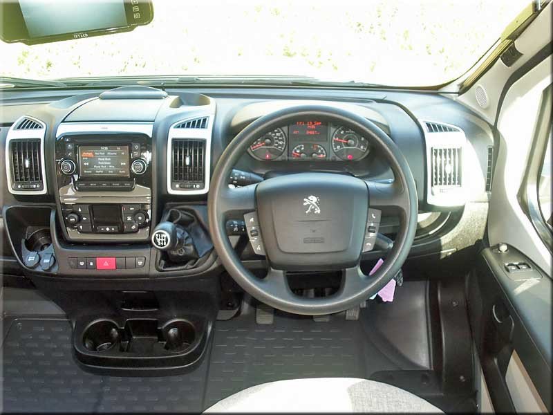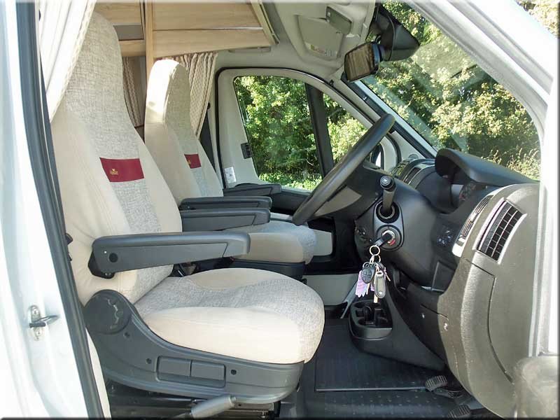 Cab air-con, swivel seats, airbags, over-cabin roof-light & small storage, cabin blinds & curtains, electric windows and mirrors, radio/CD/media player with sat-nav.