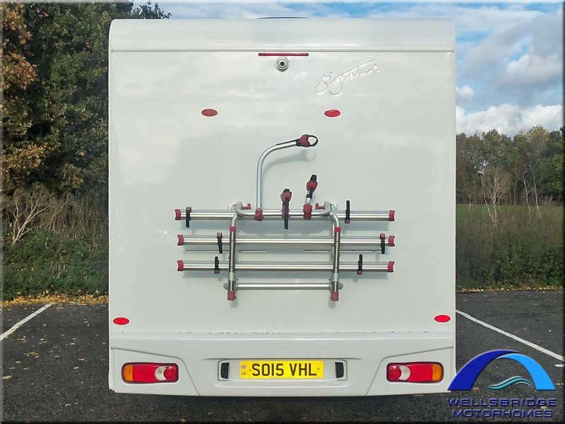 A 2 berth RHD 6 Speed Manual 2.2TD Coach-built Motorhome (2015) with PAS, 3.5m awning, 2 solar panels, cycle rack, external security lock, remote central locking. Colour: Blue/White.