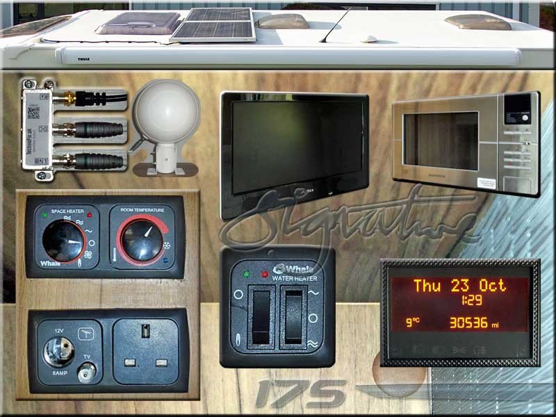 Whale heating, spot lighting, 240/12V, Tv point, Tv on bracket on wall, electric doorstep.