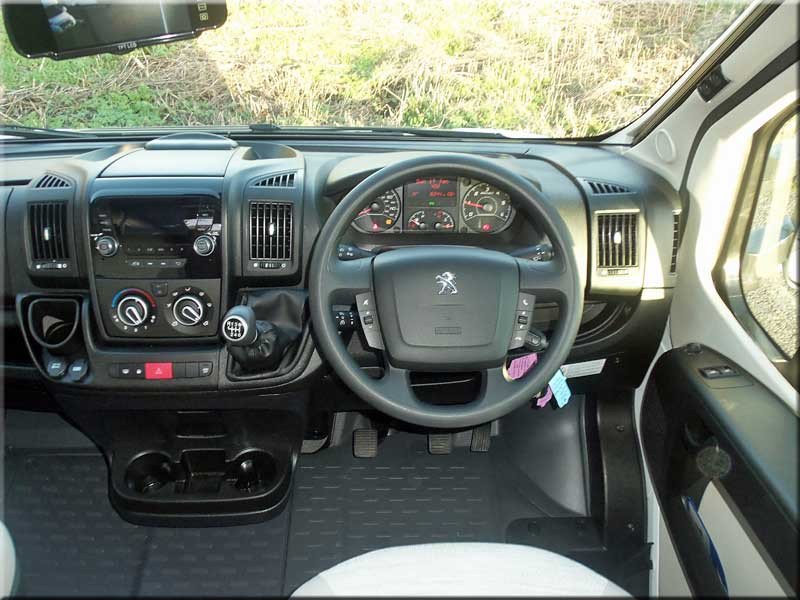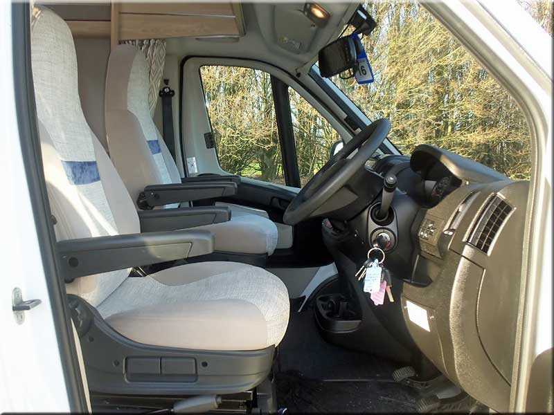 Cab air-con, swivel seats, airbags, over-cabin roof-light & small storage, cabin blinds & curtains, electric windows & mirrors, radio/media player.