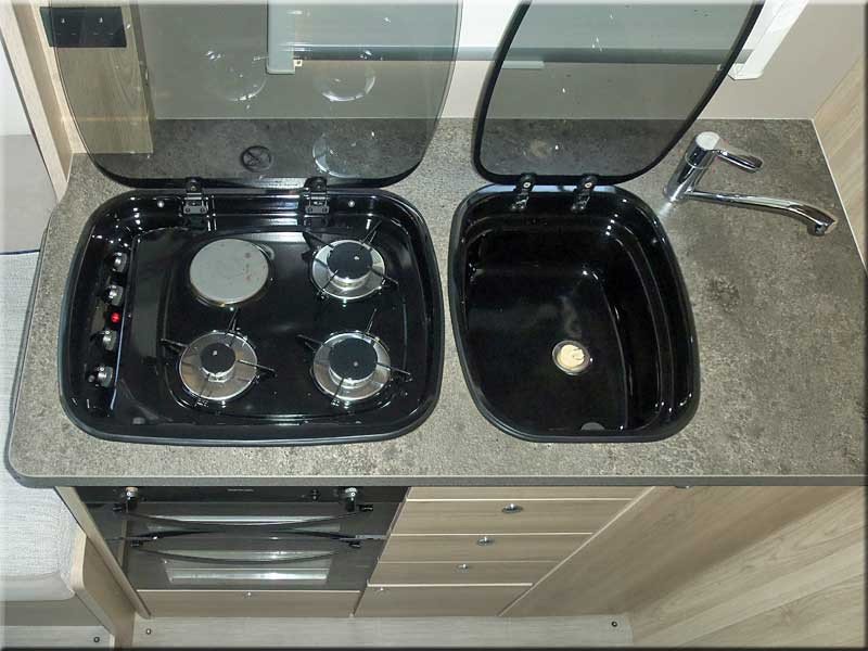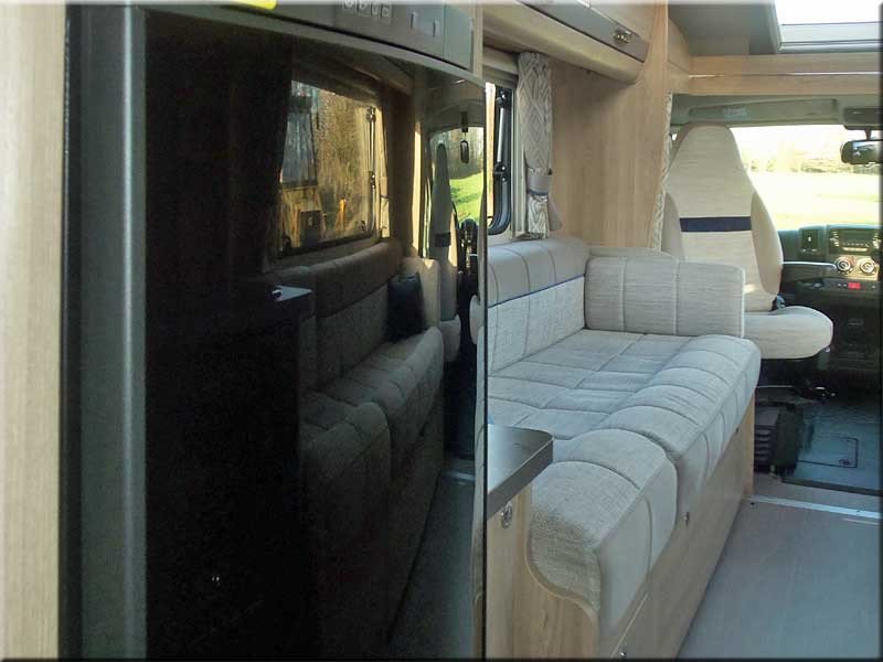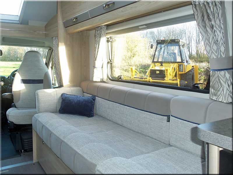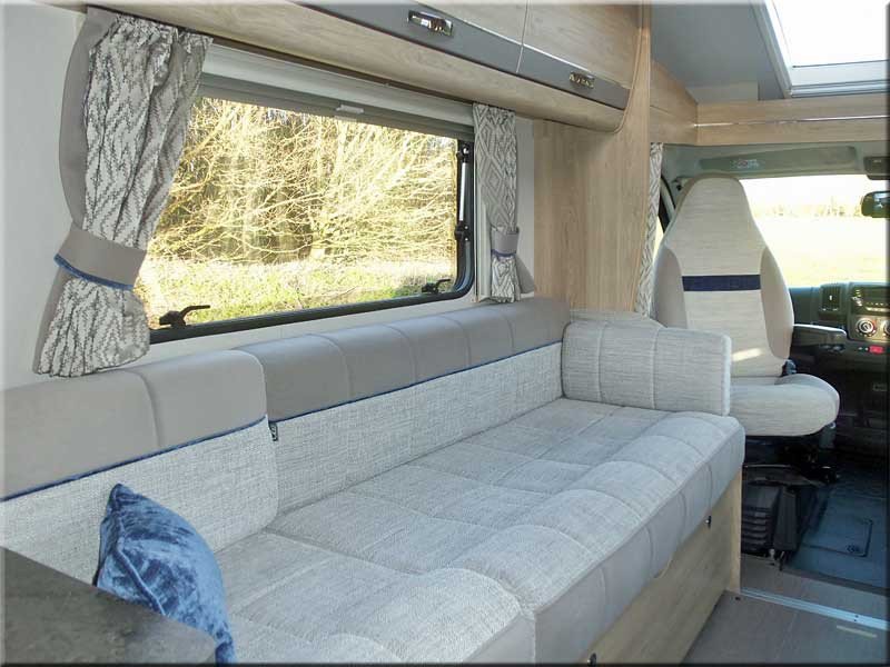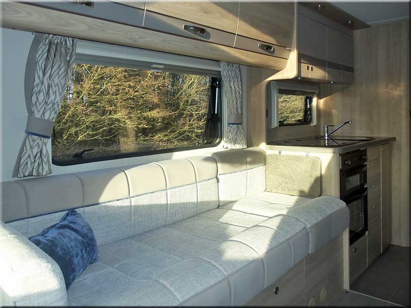 Curtains, screens & blinds, door fly screen, large roof-light, carpet & lino, imitation leather trimmed upholstery, ample storage.