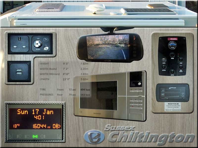 Whale heating, ceiling fan, spot lighting, 240/12V & leisure battery, Tv point.