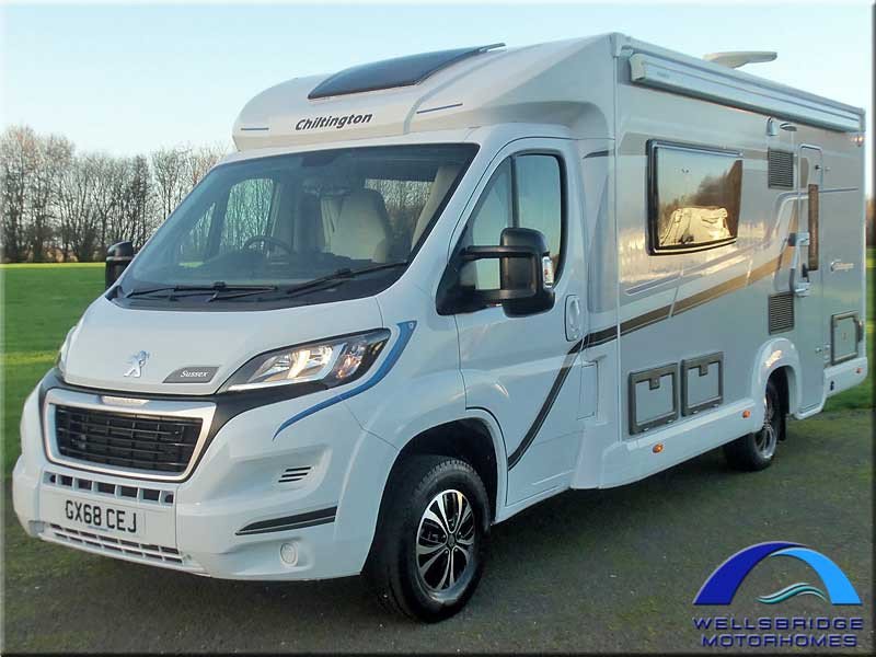 A 2 berth RHD 6 Speed Manual 2.0TD Lo-Profile Coach-built Motorhome (2018) with PAS, cruise control, 3.9m awning, solar panel, Tv aerial, tow bar, alloy wheels, external security hand rail, remote central locking.