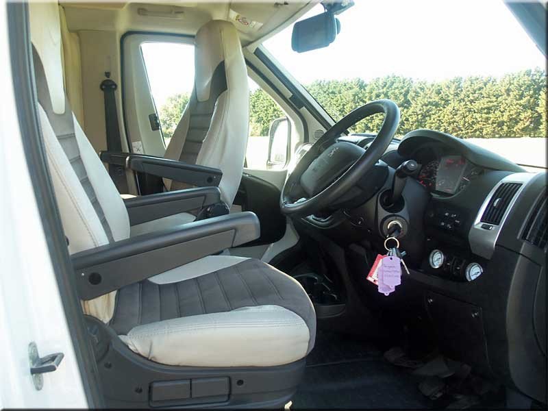 Cab air-con, swivel seats, airbags, over-cabin storage, cabin blinds, electric windows and mirrors, radio/media player.