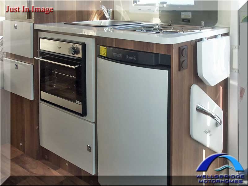 Net curtains, screens & blinds, door fly screen, large roof-light, carpet & lino, ample storage, wardrobe, imitation leather trimmed upholstery.