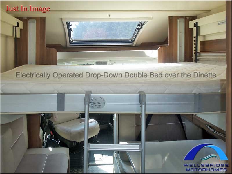 Electrically operated drop-down double bed over the dinette.
