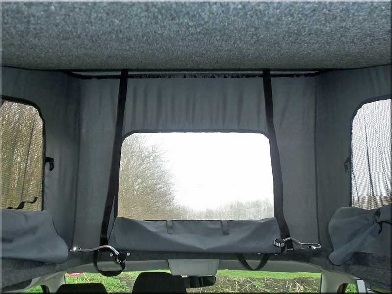 Side and rear access doors, window screens, carpet and lino flooring, ample storage.